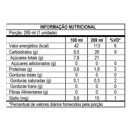 269 ml contém 80 mg de cafeína natural